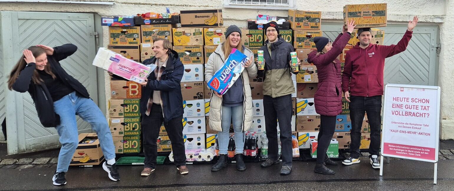 Das Ergebnis? Über 85 Kisten voller haltbarer Lebensmittel und Drogerieprodukte für die Kemptner Tafel. Von der Kemptner Tafel haben wir im Anschluss die Rückmeldung bekommen, dass die gespendeten Vorräte für ca. 3 Monate reichen.